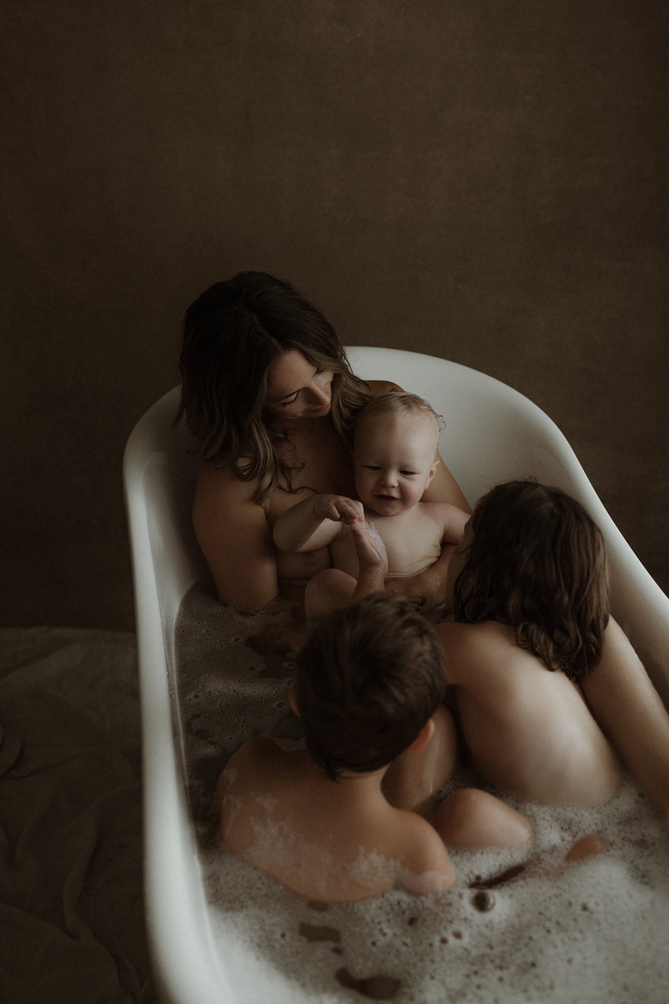 Bathtub sessions aren’t about novelty or shock. They’re about closeness. About photographing motherhood the way it actually feels—tender, layered, imperfect, and deeply human.