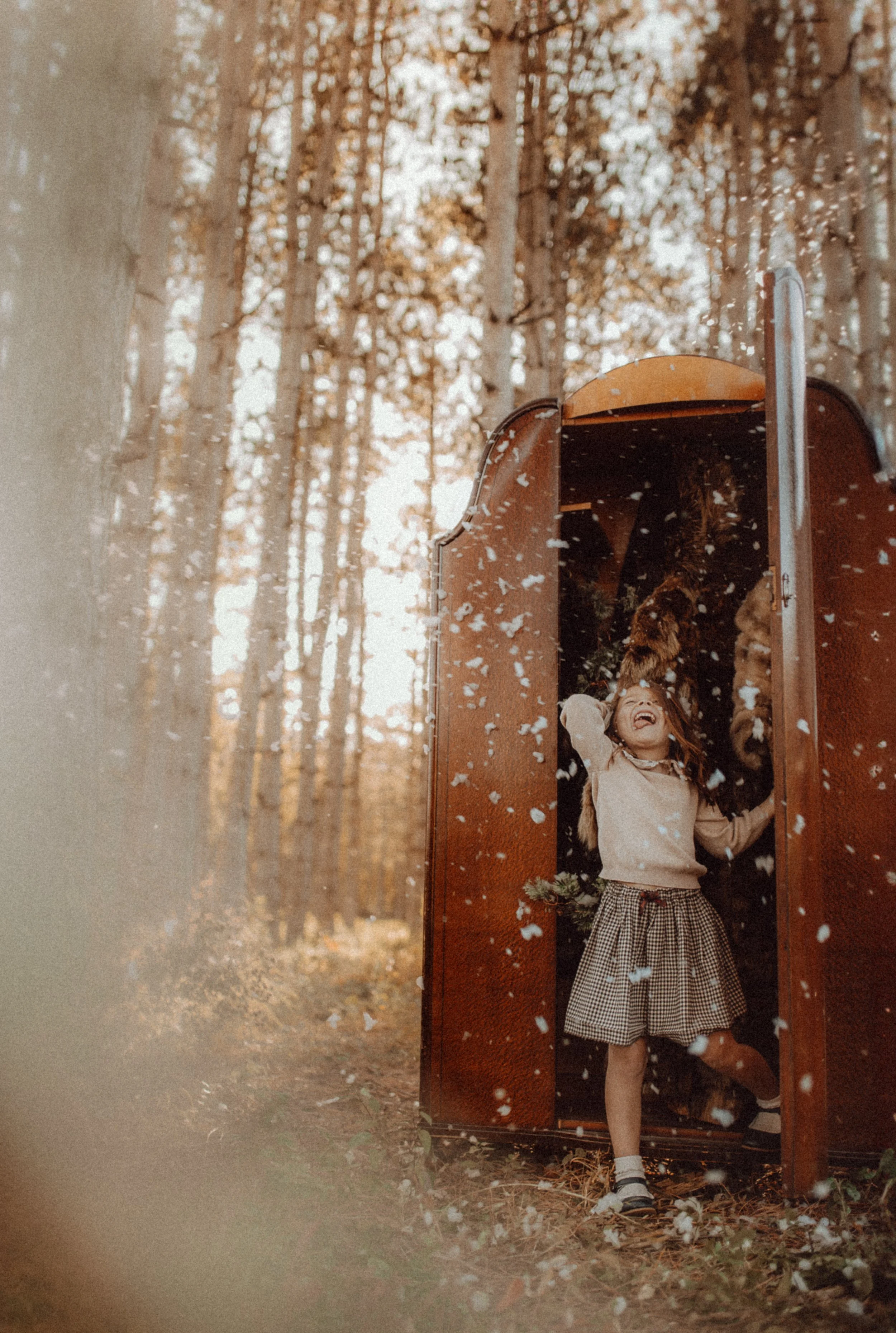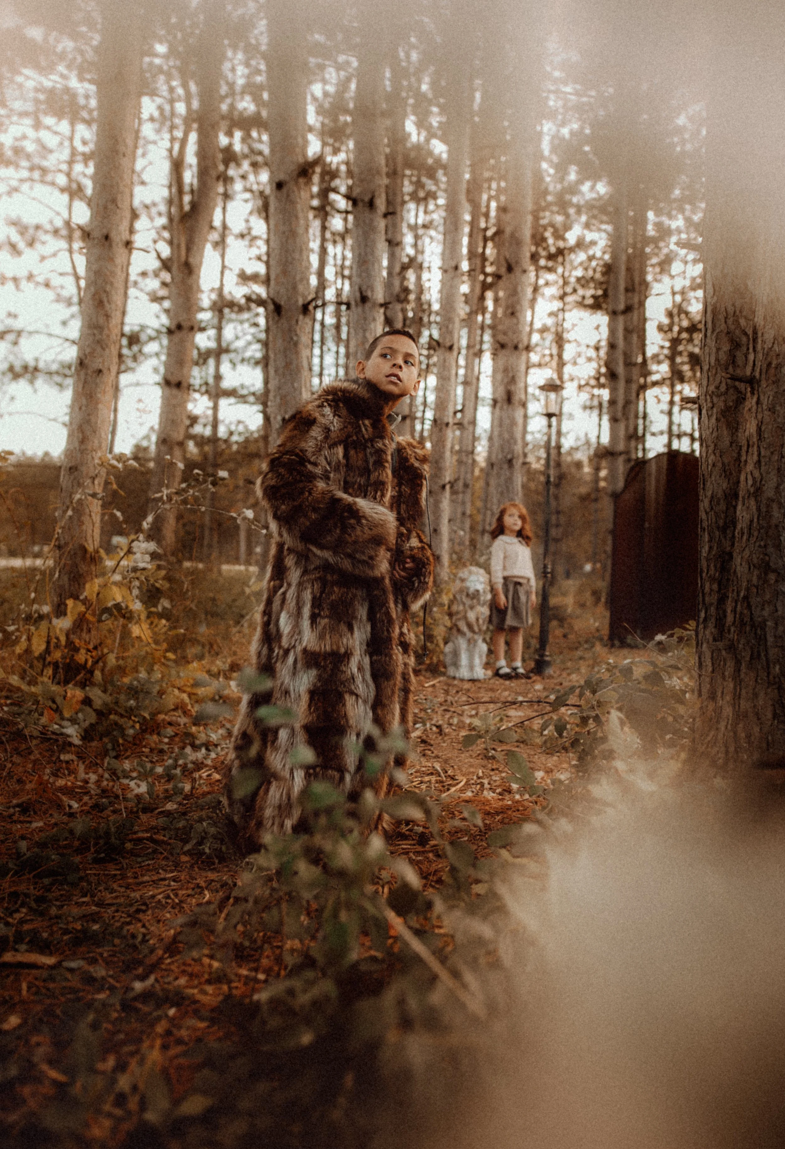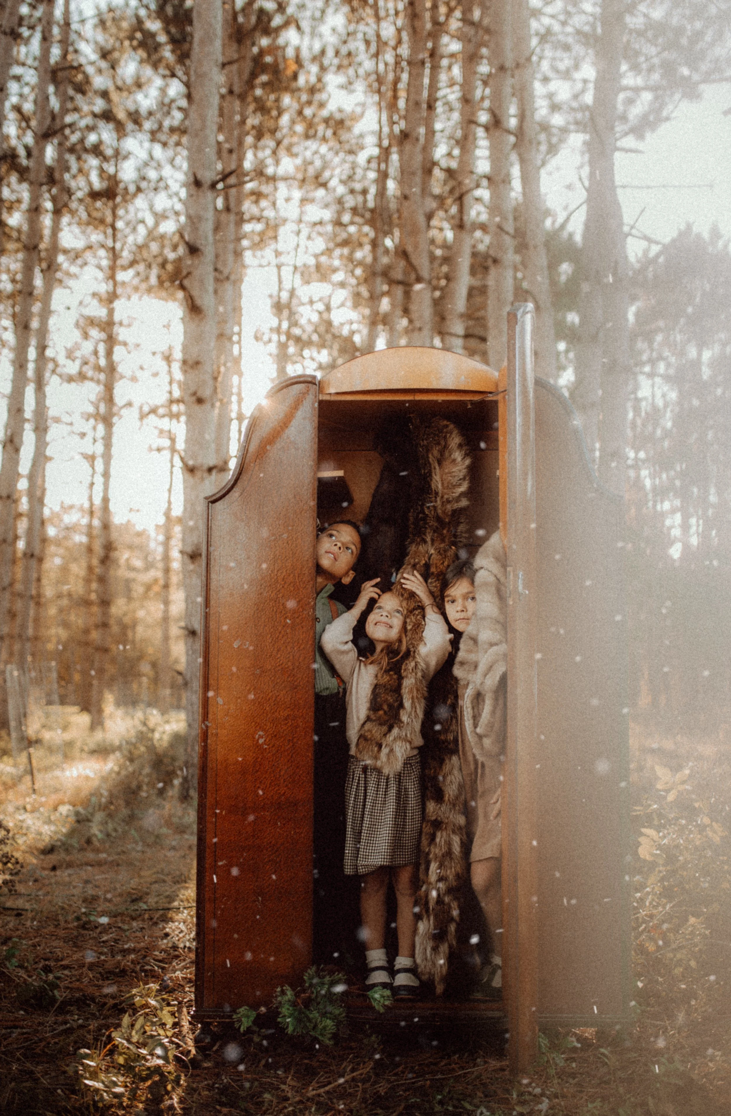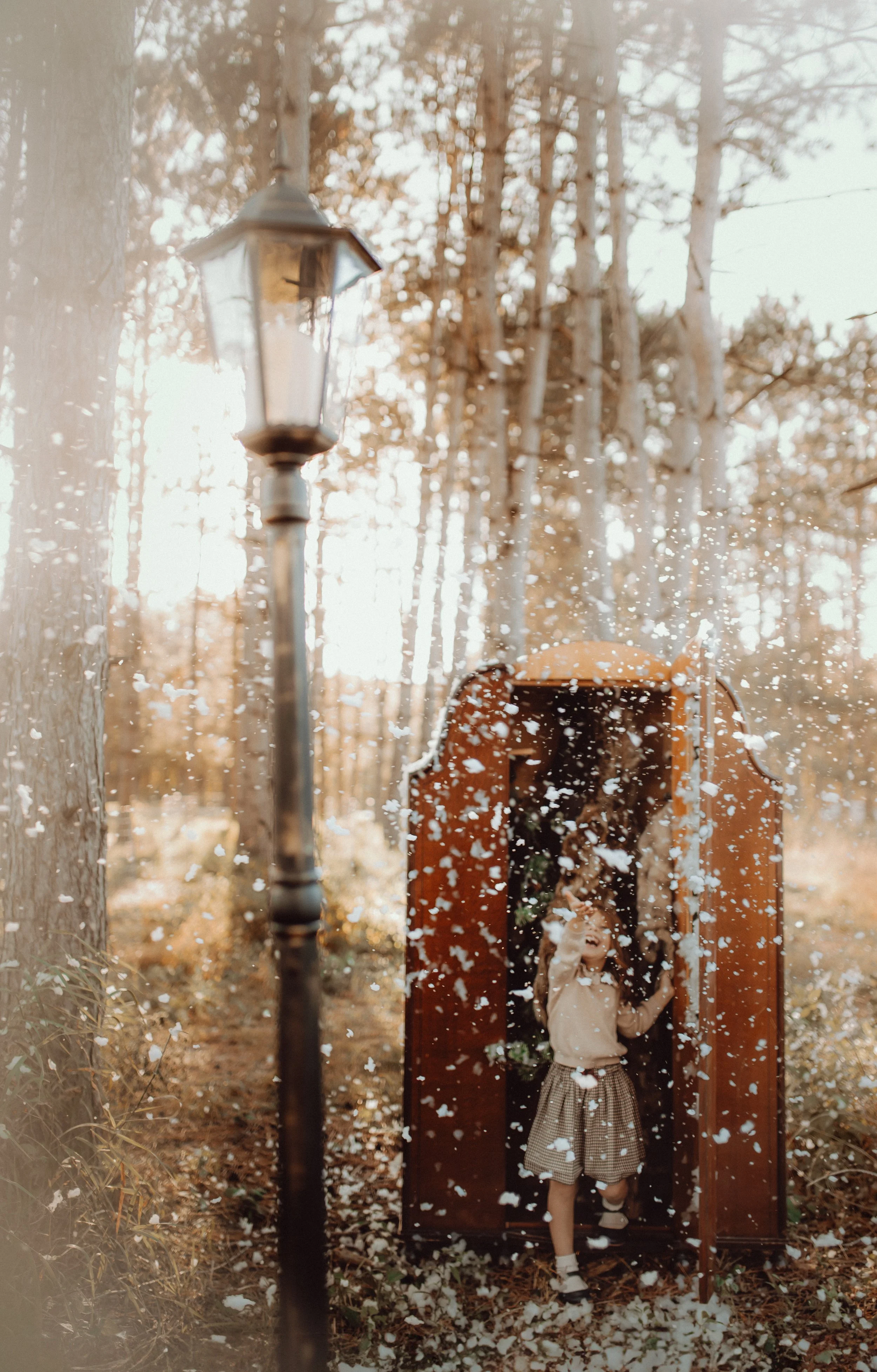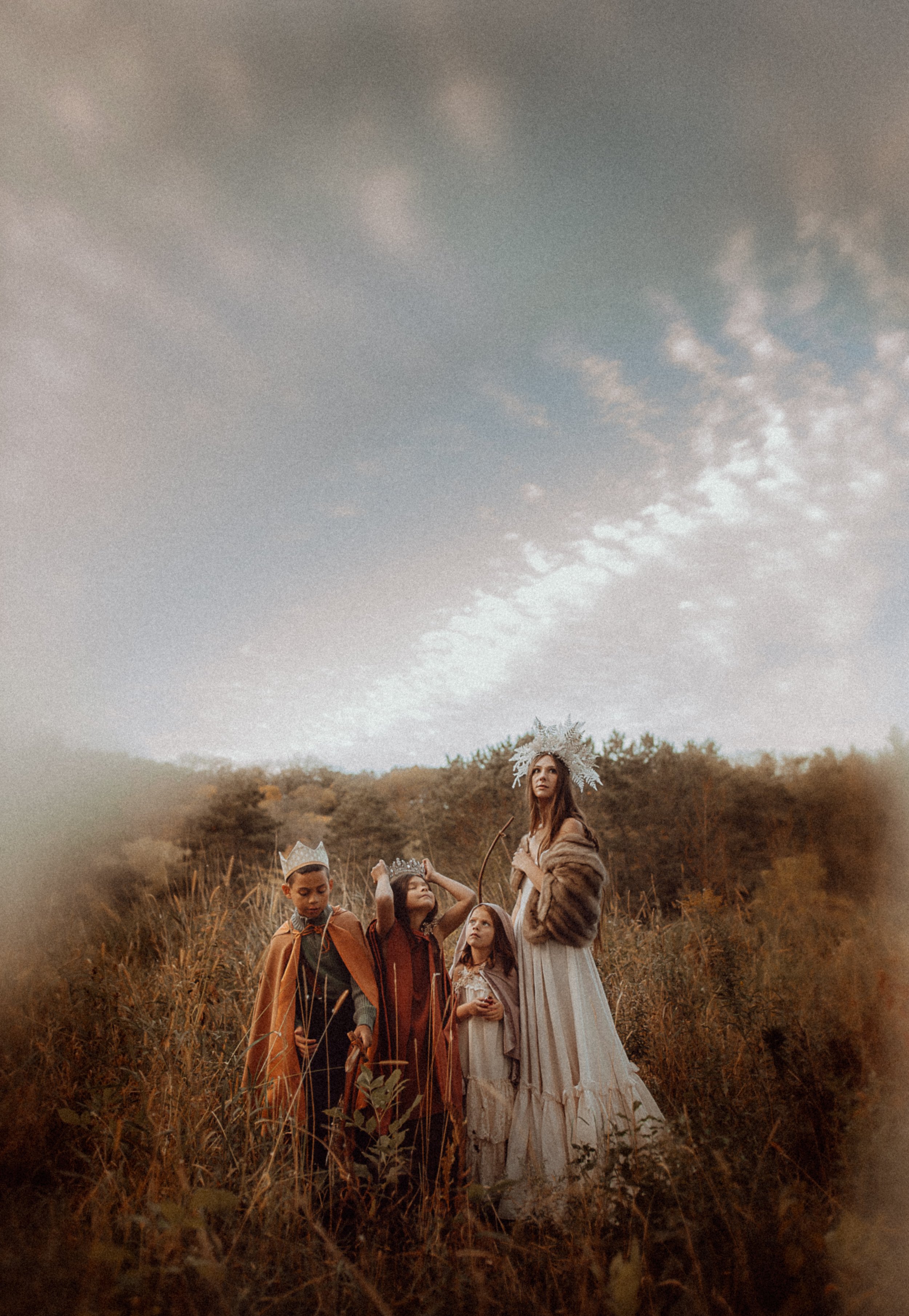 Backstory: I had been dying to do a Narnia-inspired shoot for several years, and one day I was telling someone all about it. That very day (like within the hour), my sister texted me and asked if I'd want to do a session for her and her kids, maybe something magical like with Narnia vibes. That was all I needed to hear! I started planning the mood board, collecting materials, crafting/sewing, researching snow making machines, and this is what we came up with!