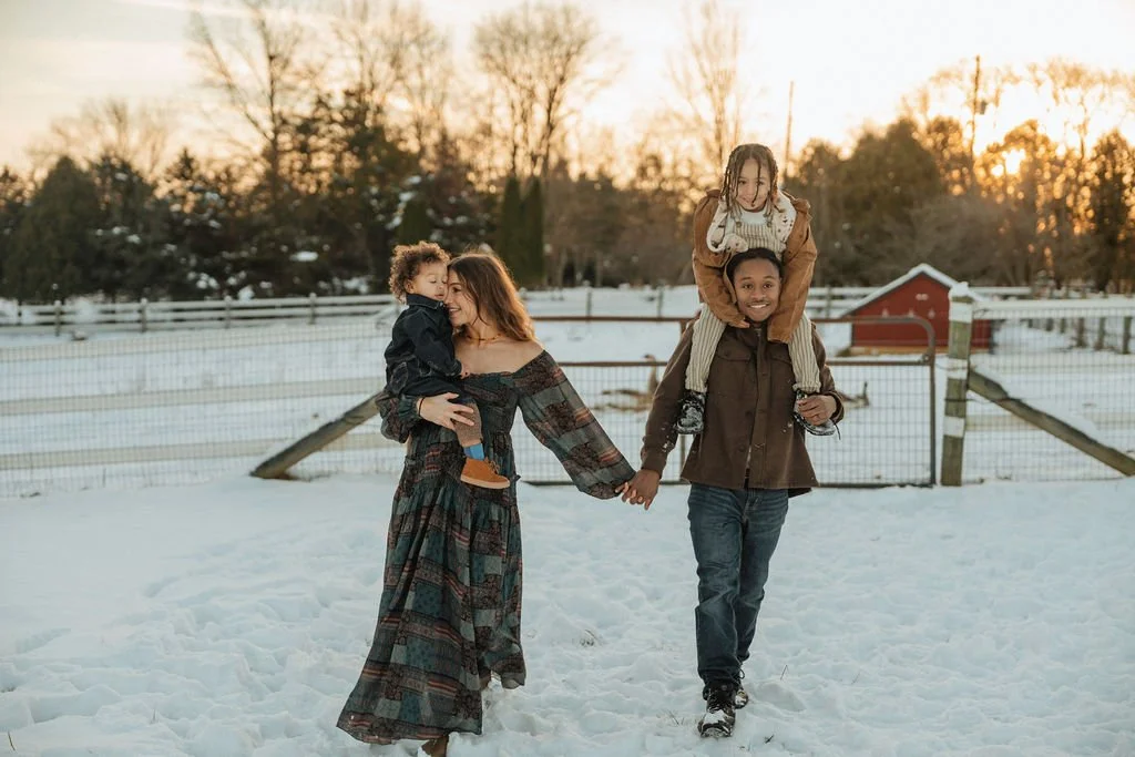 Her work feels grounded and tender, cinematic yet deeply personal. Through natural light, intentional styling, and genuine connection, Lia captures family photography in a way that feels both timeless and alive. This winter session—shot on a family farm just days after a snowfall—is a perfect example of her approach: embracing seasonality, weather, movement, and emotion to tell a story that feels real.