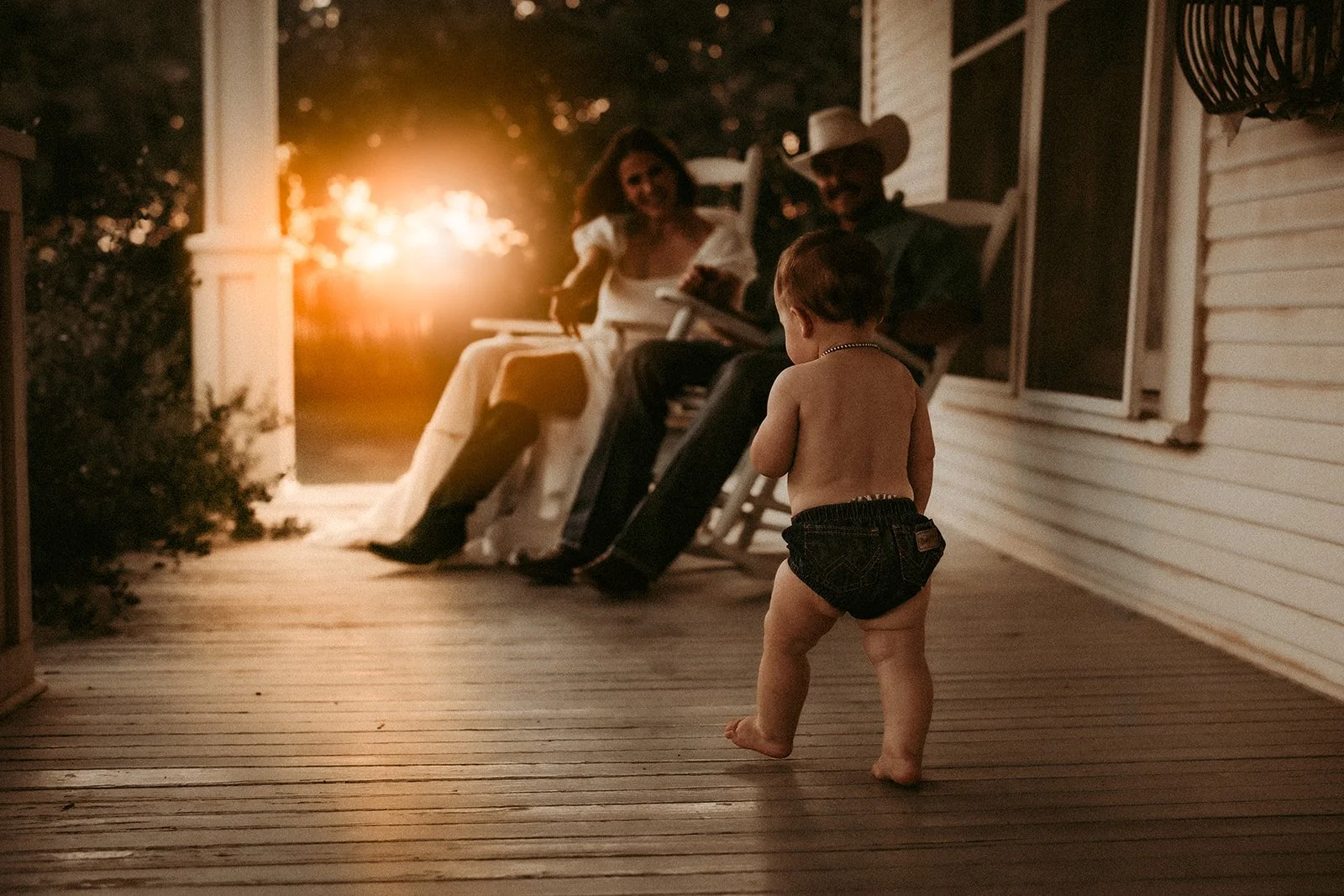 Easy. A glass of wine on my porch swing (that my mama built), watching the sun dip behind the ranch. The soundtrack? Cicadas buzzing or bullfrogs croaking at the tank. The doggies (Oakley, Baxter + George) are either running circles playing fetch, chasing lizards or pooped out on the swing right next to me. It’s peaceful, simple, and the perfect reminder that slow moments are just as sweet as the loud ones.